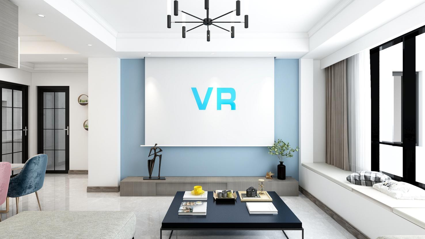 電視背景墻以少即是多的態(tài)度為室內(nèi)塑造更多的想象空間,大面積留白的思路結(jié)合跳脫的藍(lán)色色點(diǎn)綴呼應(yīng),回歸到電視墻本質(zhì)把視覺更多留在電視。